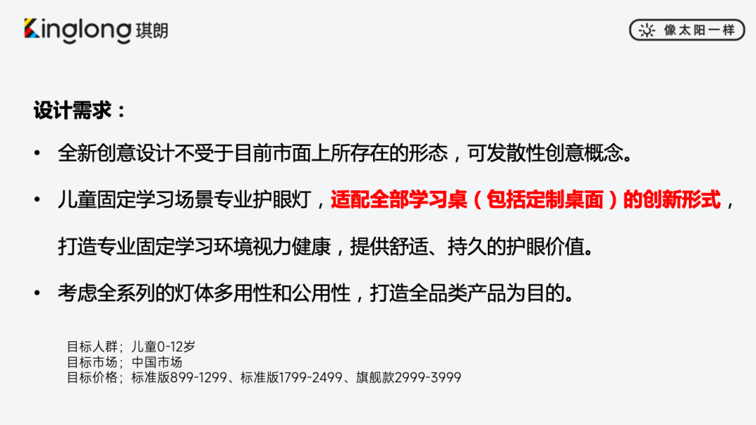 廣東琪朗健康照明科技有限公司需求為《兒童固定學習場景專業(yè)護眼燈》;