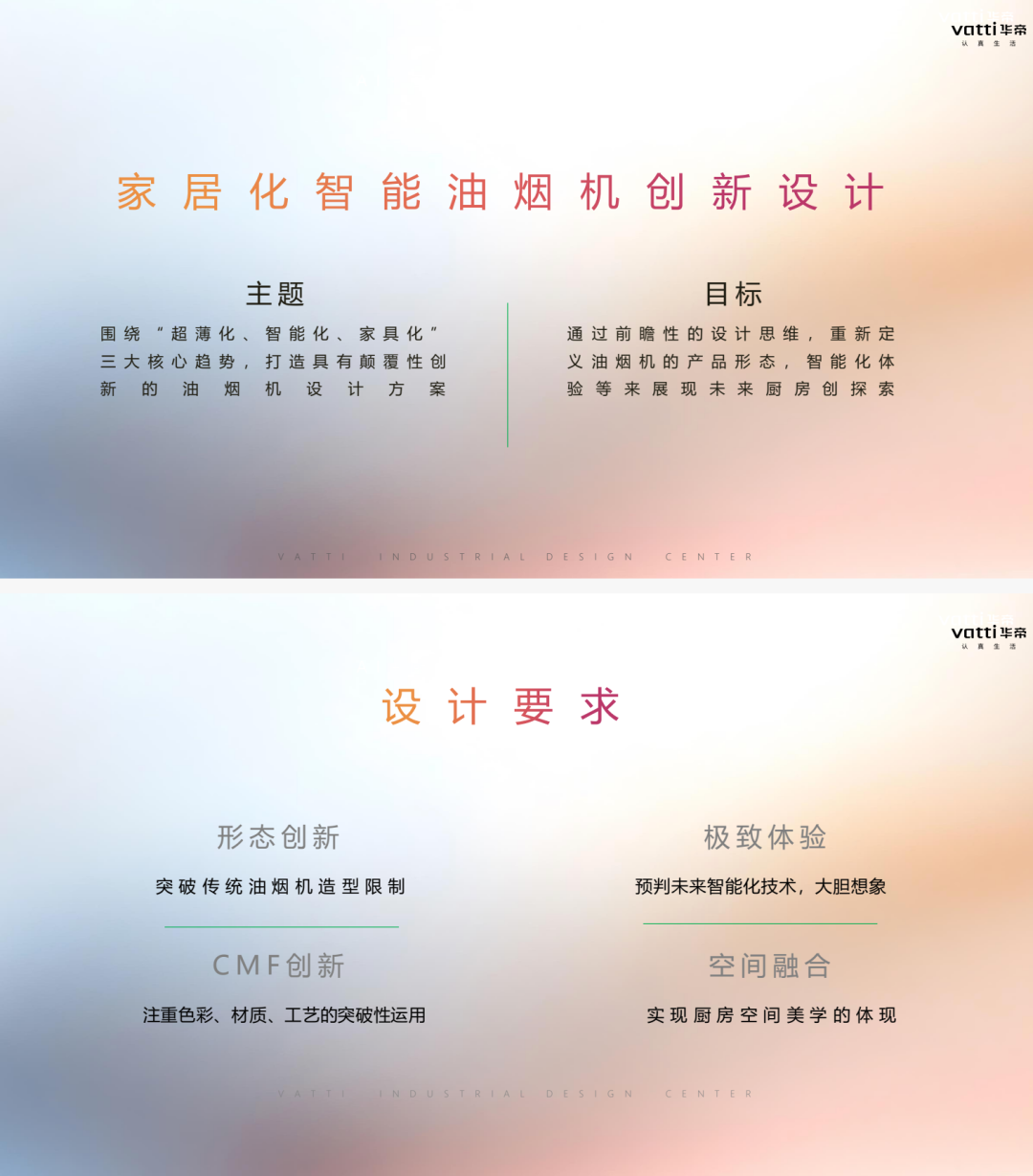 梁文淦圍繞 “超薄化、智能化、家具化” 三大核心趨勢,明確該命題旨在突破傳統(tǒng)油煙機設(shè)計局限,打造具有顛覆性創(chuàng)新的產(chǎn)品方案。他從“形態(tài)創(chuàng)新、極簡美學、CMF 創(chuàng)新、空間融合”四大設(shè)計上要求展開詳細說明。同時,分享了企業(yè)對方案落地可行性的考量標準,為參賽者找準設(shè)計方向、匹配需求痛點提供了關(guān)鍵指引。